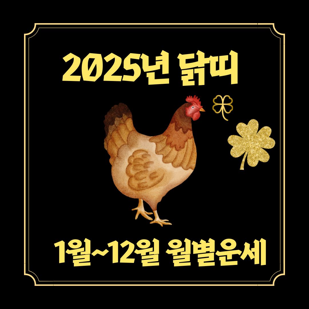 2025년 닭띠 월별 운세를 알아보세요! 건강운, 금전운, 연애운 등 돼지띠에게 찾아올 행운과 도전들을 월별로 정리했습니다. 중요한 일정이 있는 월 운세는 꼭 빠르게 확인하고 준비하세요!